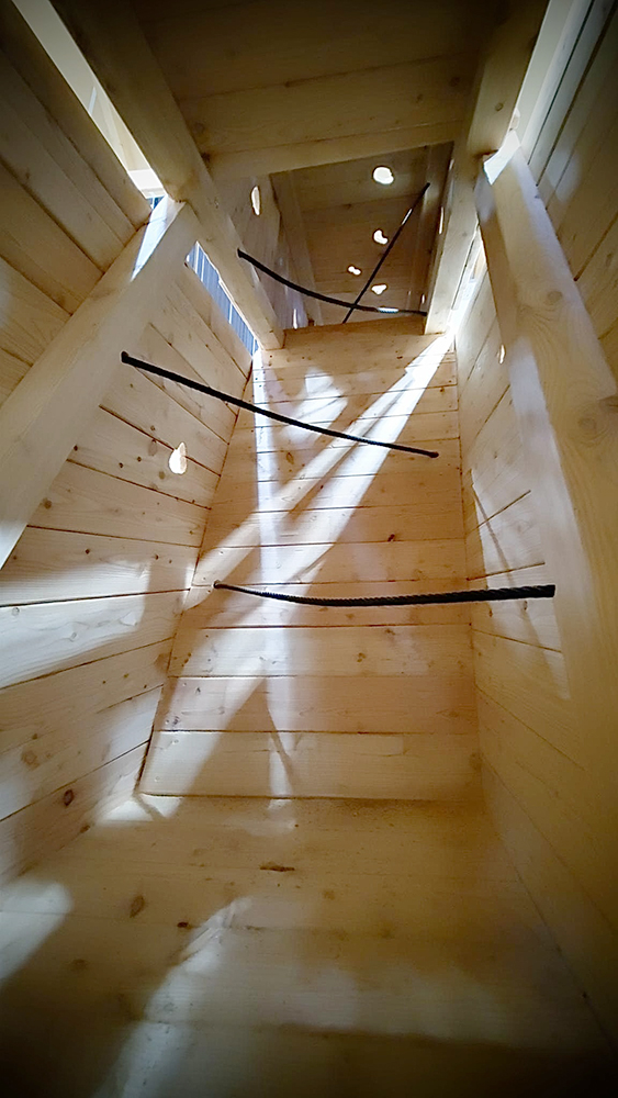 Die Gemeinde Zeithain hat im Rahmen der städtebaulichen Entwicklung des alten Dorfkerns ein ehemaliges Wohn- und Stallhaus zur Kinderbude umbauen lassen. Dieser Ort steht nicht nur den Kindern des benachbarten Horts „Sonnenblume“ sondern allen offen, welche ihre Freizeit mit unterschiedlichen kreativen Möglichkeiten füllen möchten. Unsere Aufgabe bei der Neukonzeption bestand darin, einen Indoor-Spielplatz für drei aneinandergrenzende Räume zu entwickeln, der Kinder verschiedener Altersstufen gleichermaßen anspricht, stets herausfordernd bleibt und die räumlichen Gegebenheiten optimal sowie kreativ nutzt. Neben einem Ballspielraum sollten möglichst viele Elemente eines Outdoor-Spielplatzes Verwendung finden. Mit dem noch erhaltenen und liebevoll rekonstruierten Torbogen im größten der drei Räume haben wir ein spannendes Element in die Planung eingebaut. Heraus kam ein Spielgerät, das sich wie eine riesige Kreatur durch, über und bis in den Nachbarraum windet und dort in einem trichterförmigen Ausstieg an einer Kletterwand endet – ein echtes Abenteuer zum Klettern und Staunen! Die Wege innerhalb des Geräts führen durch engere und weitere Passagen, erstrecken sich auf und über unterschiedlich hohe Ebenen und münden zu Plattformen, von denen eine in eine Röhrenrutsche ins Freie führt. Die verschlungenen Pfade, die man nicht komplett überblicken kann, sind nicht nur ein körperlicher Kraftakt, sondern fordern auch Mut, sich ins Unbekannte zu stürzen und gemeinsam mit anderen Kindern am Gerät zu spielen. So wird hier neben dem motorischen Wachstum auch das Selbstbewusstsein an sich gefördert.